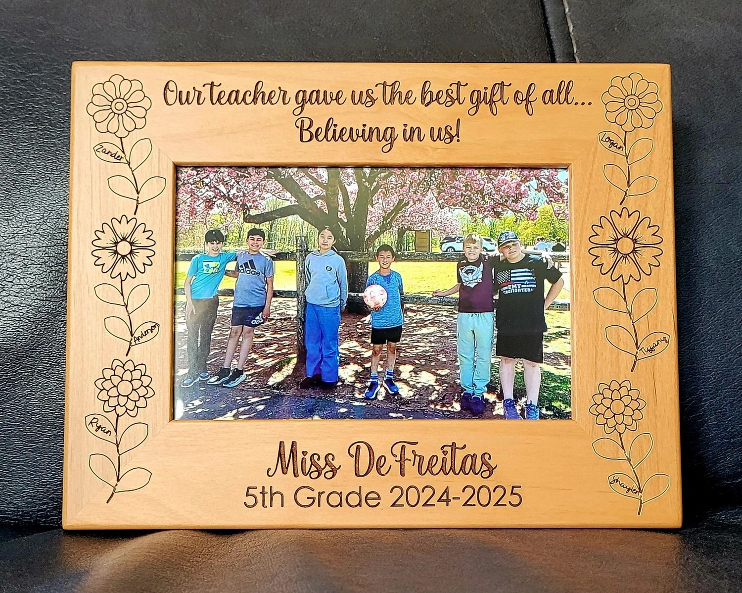 A few months ago, I asked Frankie to make a customized picture frame for my son's teacher, and she made it happen! This picture frame is gorgeous in person! If you zoom in, the students' names are on a leaf of each flower. She absolutely LOVED it! Thank you again, Frankie, for making this crazy idea happen!