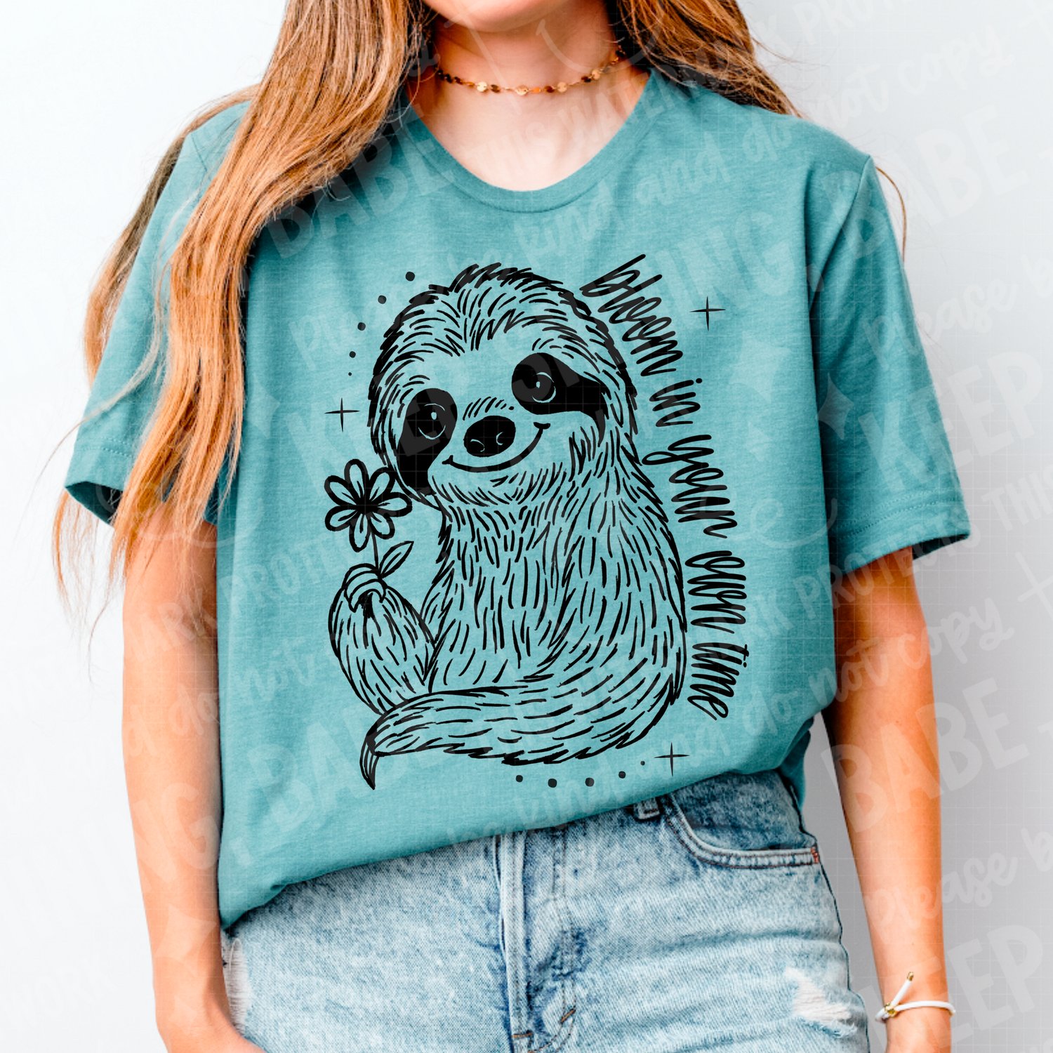 Embrace the chill life with this adorable graphic tee featuring the most relaxed animal on the planet: the sloth! This shirt carries a powerful message of self-acceptance and patience: "Bloom In Your Own Time."