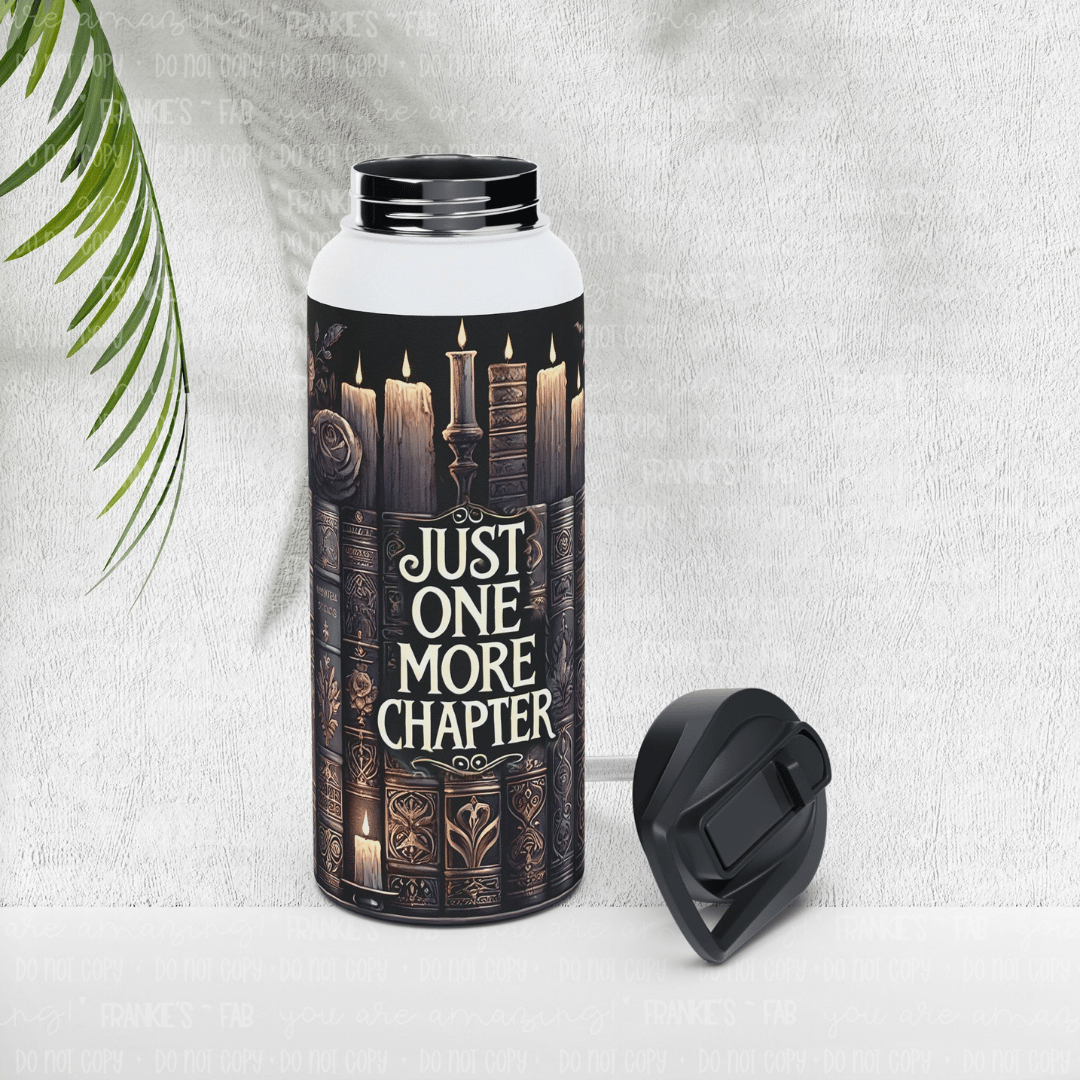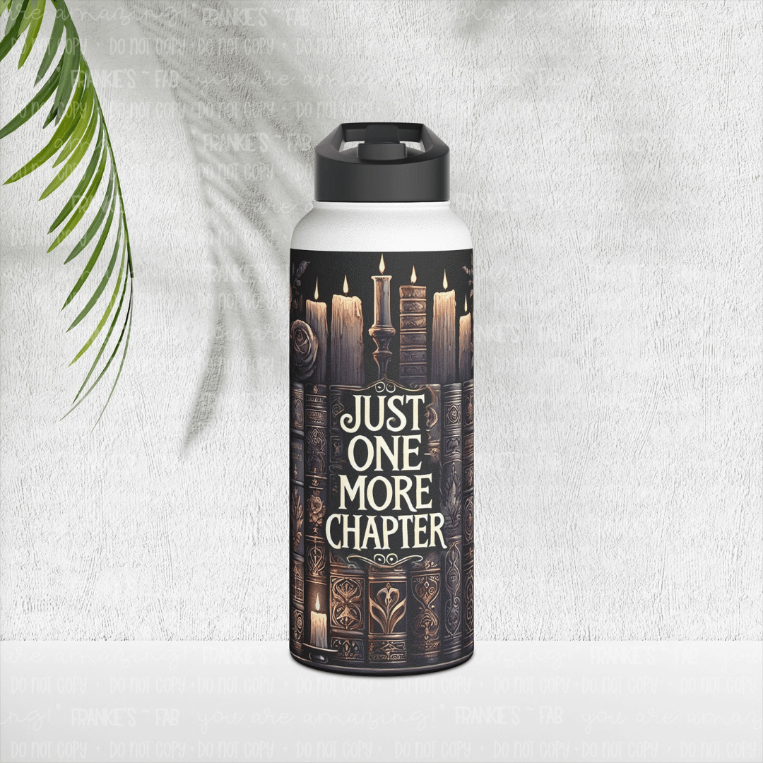 Stay hydrated while you dive into your next great read with our "Just One More Chapter" water bottle. Designed for the dedicated reader, this 32oz bottle is your perfect companion for long reading sessions, library trips, or late-night literary marathons. The bold, simple text is a quiet nod to your passion, serving as a reminder that the next chapter is always waiting.