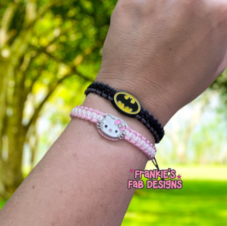This handmade Batman & Hello Kitty friendship bracelet set is the perfect accessory for the Batman & Hello Kitty fan in your life or yourself.
