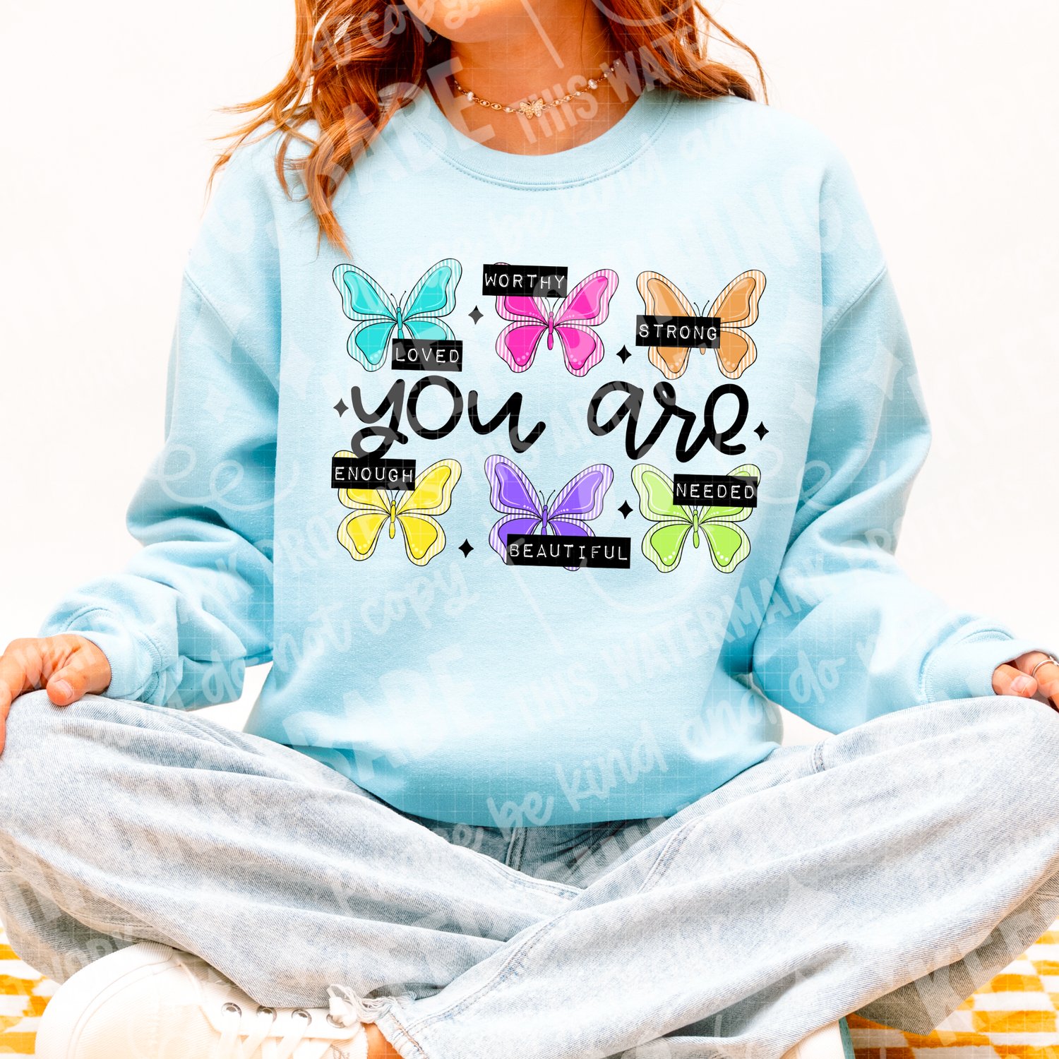 Wrap yourself in warmth and self-love with our "You Are" Affirmation Butterfly Sweatshirt! This beautiful, pastel-colored crewneck is more than just clothing—it's a daily reminder of your inherent worth.